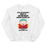 Do people have the right to believe in what they want? Yes. Do you have the right to tell them how stupid their beliefs are? Absolutely. Available in multiple colors, this South Park Cartman What You Believe Unisex Sweatshirt lets you tell people exactly what you think of their ideas every time you wear it.