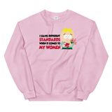Why is it so terrible for Butters to want a woman who takes care of herself and knows how to look good, who's got perfect skin and no splotches on her legs, and perfect everything? Is all of that really too much to ask? Wish that impossible-to-please friend of yours a Happy Valentine's Day this year with the South Park Butters Different Standards Crew Neck Sweatshirt available in Light Blue, Pink and Black and maybe they'll end up finding the perfect everything after all.