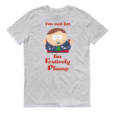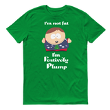 Get festively and stylishly plump with this South Park Festively Plump Adult Short Sleeve T-Shirt. Perfect for the holiday season, this comfy tee reminds everyone that you are not fat, just festively plump like Eric Cartman.
